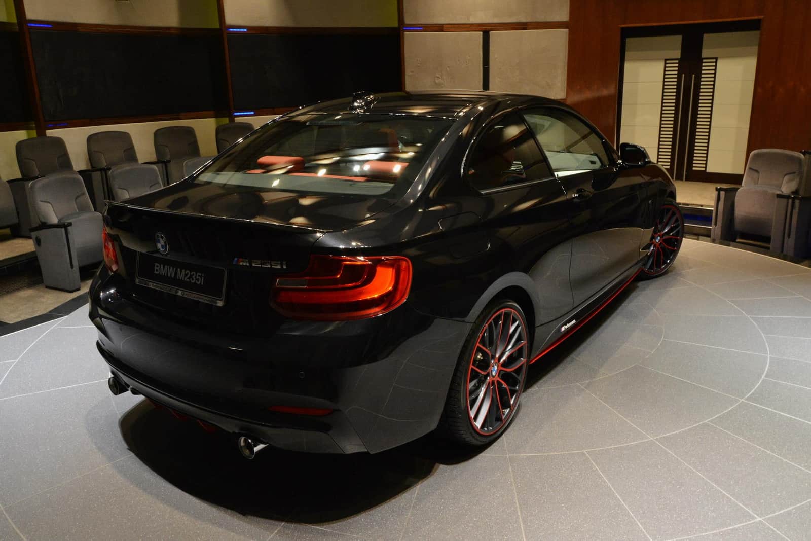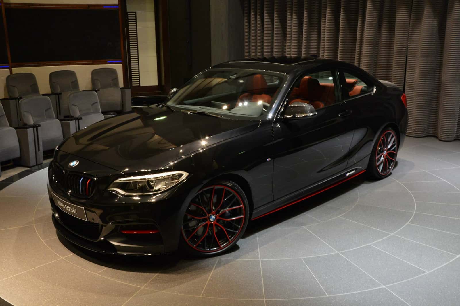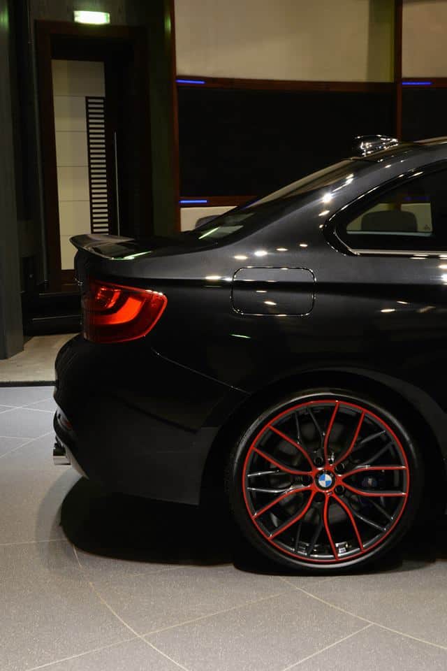 كما حصلت العتبات الجانبية والمشتت علي لمسات M ، أما في الداخل ، فيتناسب اللون الأحمر مع الجلد الذي يمثل الفرش الداخلي. كما توجد كذلك أغطية مرايا من ألياف الكربون واسبويلر علي باب الحقيبة الخلفية ومشتت أمامي. وقد نقلت هذه الصور التي نراها هنا من صفحة BMW أبو ظبي موتورز علي الفيس بوك . ويبقي السؤال : هل ترون أنه من المناسب أن تتزين M235i أو غيرها من سيارات BMW بكل هذه الإضافات وتظل علي أناقتها التقليدية ورصانتها ؟