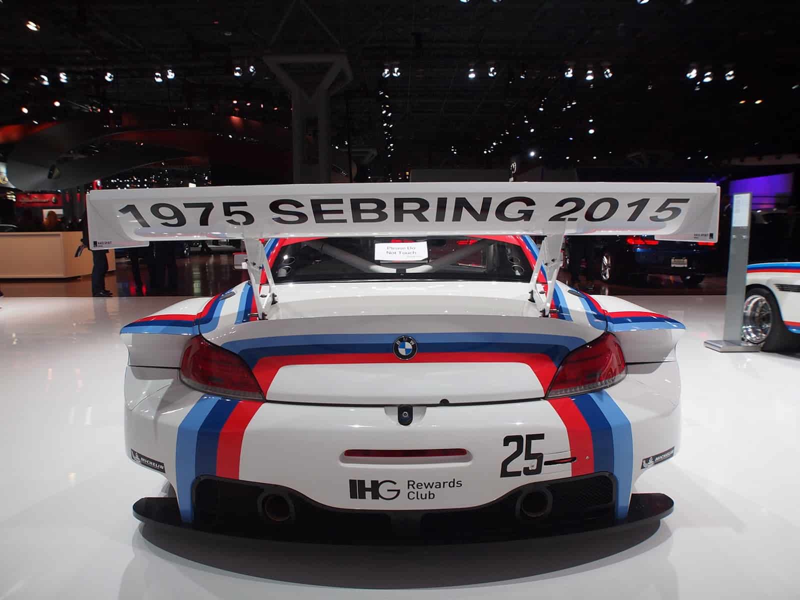 السيارات – احتفلت BMW خلال معرض نيويورك 2015 بأول فوز لها في رياضة السيارات في الولايات المتحدة في عام 1975 في بطولة 12 Hours of Sebring بجانب الاحتفال بالذكري الخمسين لألباين من خلال تقديم ألباين B6 جران كوبيه. وقد امتلأ جناح الشركة بالسيارات السباقية المميزة باللونين الأحمر والأبيض واللون الأزرق ، وتظهر في الجناح موديلات Z4 GTLM و 3.0 CSL.
