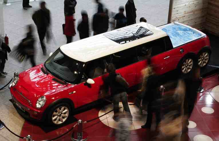 5- والسيارة التالية هنا هي ميني كوبر S التي تعرف باسم ميني XXL بطول 6 أمتار والتي قدمت في ستاد طوكيو الوطني في 2005 وتأتي بأربعة أبواب وتتسع لست ركاب ولها 6 عجلات ومزودة في الجزء الخلفي المفتوح بجاكوزي.