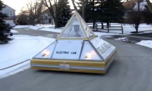 10 تعرف السيارة التالية باسم Dream Car 123 وتعكس في تصميمها شكل الأهرام المصرية ولكنها مجهزة مثل الدبابات كما يعكس جسمها اضاءة خاصة في الليل وتحتاج 3.5 ساعة للشحن ويمكنها قطع مسافة 240 ميل علي سرعة 40 ميلساعة.