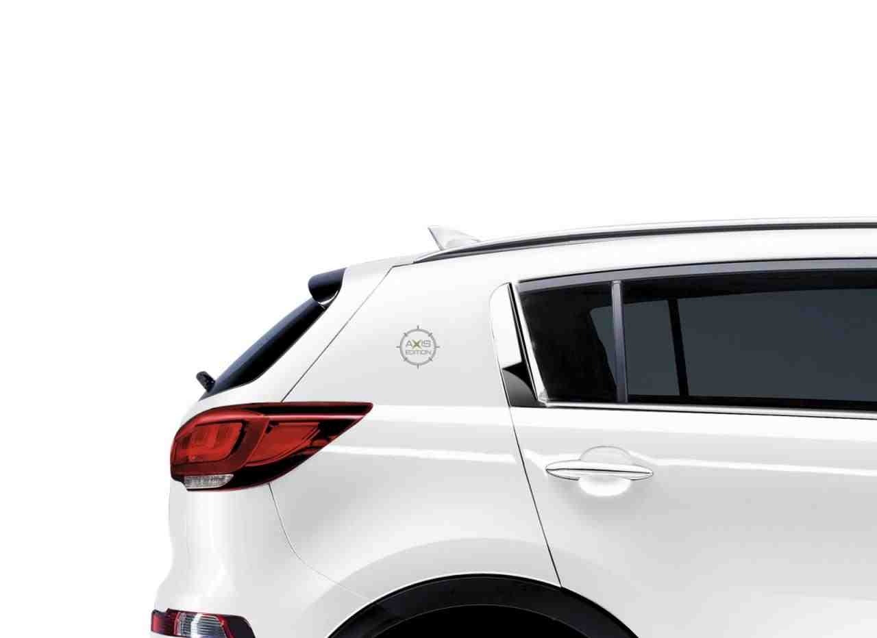 أما في الداخل ، فتوجد مقاعد بفرش جلدي أسود مع مدخلات من أقمشة ديناميكا الرمادية اللون ومدخلات رمادية أخري علي الأبواب وتبطين أسود للسقف بجانب واقي شمس أسود وزجاج يوفر الخصوصية ومرآة للرؤية الخلفية بنظام خاص للتعتيم. وستعرض سبورتاج Axis Edition بمحرك بنزين GDI سعة 1.6 لتر بقوة 133 حصان وعزم دوران 165 نيوتن.متر ومحرك ديزل سعة 1.7 لتر بقوة 114 حصان وعزم دوران 260 نيوتن.متر.