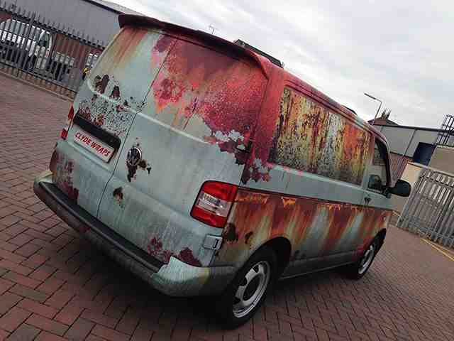 السيارات – يبدو أن فولكس فاجن ترانسبورتر T5 SportLine تعتبر من الأهداف المثيرة للصوص ، ولهذا قرر مالك هذه النسخة من السيارة الفان التي نراها في الصور أن يضيف لسيارته حلة خارجية خاصة غريبة من بلون الصدأ غطت جوانب السيارة من قبل شركة Clyde Wraps في جلاسكو في اسكتلندا.