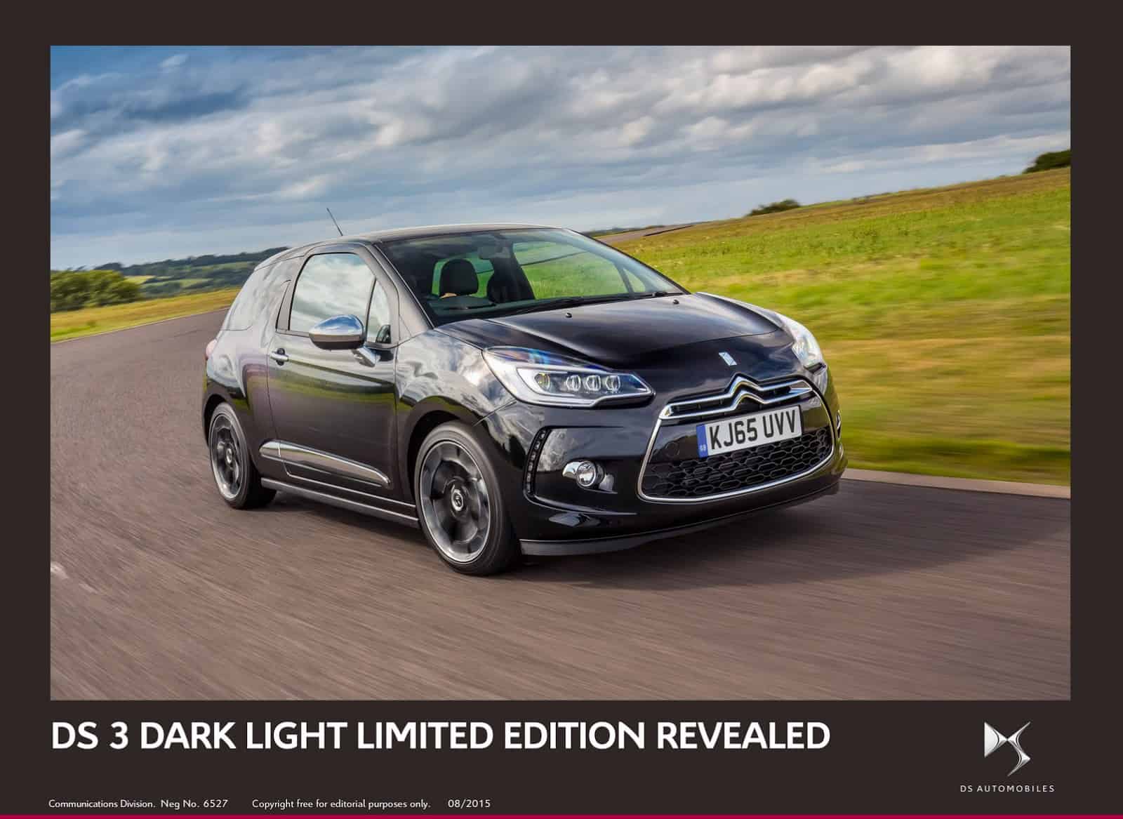 السيارات – أعلنت العلامة الفرعية لسيتروين ، DS عن نسخة إنتاج جديدة من موديل DS3 بحلة خاصة تستعرض ملامح موديل تجريبي عرض في مهرجان جودوود للسرعة 2015. وقد أطلق علي النسخة المحدودة الجديدة اسم DS3 Dark Light ، وسيقتصر انتاجها علي 300 نسخة بسعر يبدأ من 20.795 استرليني. وتجمع السيارة بين حلة خارجية بلون أسود معدني بيرلا نيرا مع باقة فينيل سوداء تحيط جانبي السيارة.