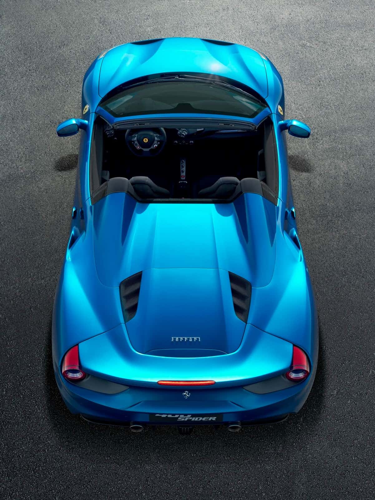 وقد صنعت مصابيح السيارة والشاسيه عالي الأداء في مركز سكاجليتي بنفس الصلابة الالتوائية والصلابة للشاسيه . وتأتي السيارة مجهزة بسقف صلب قابل للطي ظهر لأول مرة في موديل 458 سبايدر ، وأكدت فيراري أن هذا السقف أخف بواقع 25 كجم كما أنه يوفر حماية أفضل ويمكن فتحه وغلقه في 14 ثانية فقط حتي خلال حركة السيارة.