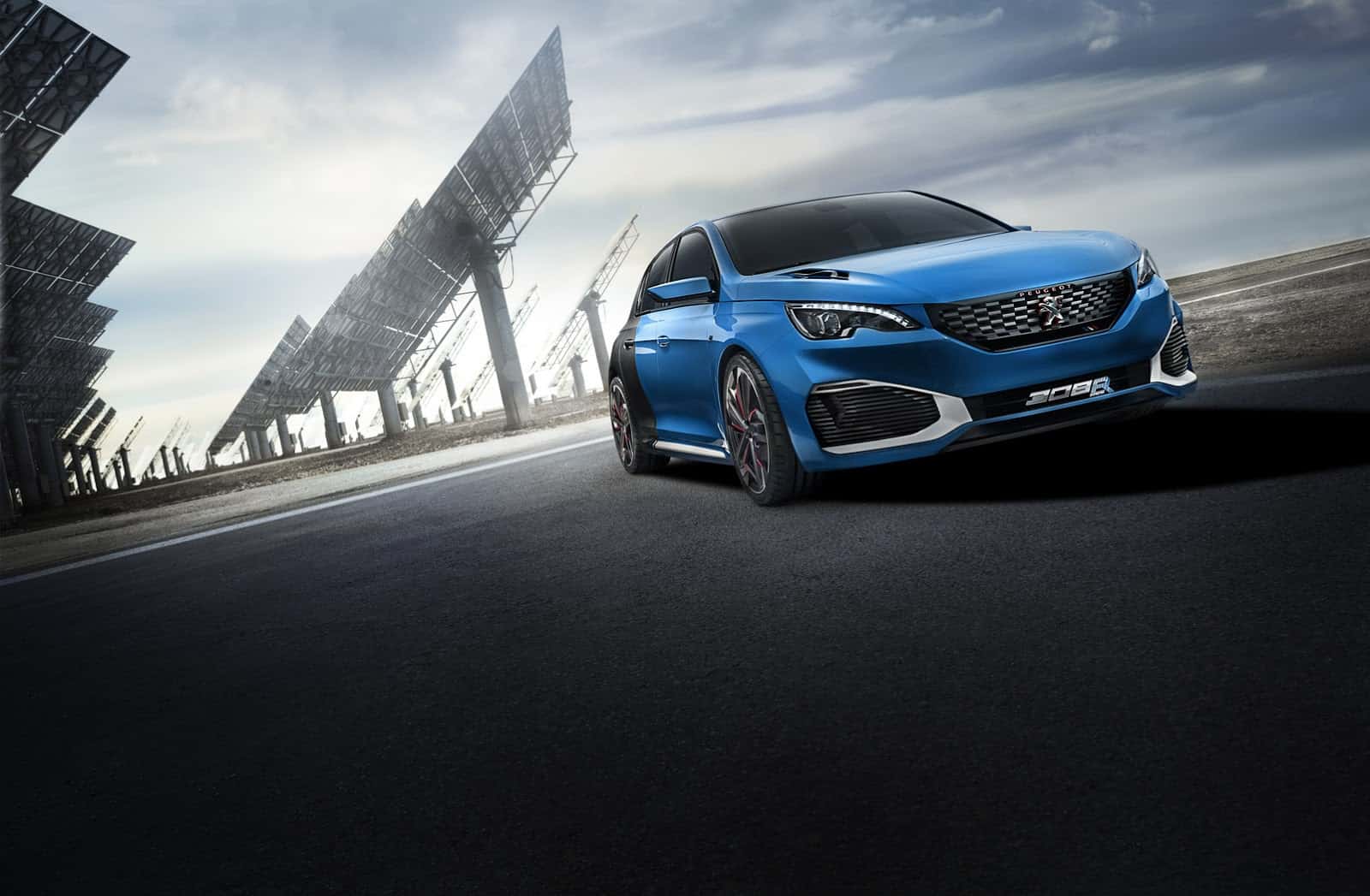 وتأتي السيارة بمحرك رباعي الأسطوانات سعة 1.6 لتر بقوة 266 حصان كما في موديل 308 Gti وبمحركين كهربائيين بقوة 114 حصان ، بمعدل محرك لكل محور. وهذا يجعل توزيع الوزن بواقع 60 في الأمام إلي 40 في الخلف ، فيما يتصل المحرك بناقل حركة من 6 سرعات . فيما يبلغ معدل القوة للوزن حصان لكل 3.1 كجم .