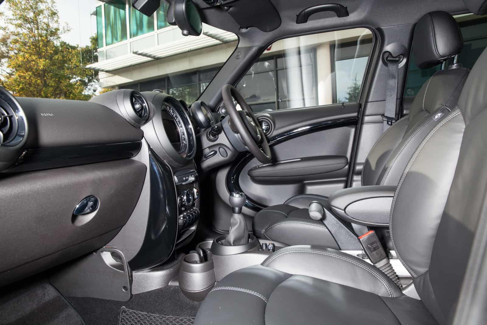 وفي الداخل ، تأتي السيارة الخاصة بفرش جلدي باللون الأسود كربون جرافيتي ولمسات بيانو سوداء ، فيما زودت السيارة بعجلة قيادة متعددة الوظائف وتكييف هواء أوتوماتيكي ومقاعد أمامية قابلة للتسخين بصورة قياسية بجانب مصابيح أمامية زينون. ويمكن طلب الحصول علي السيارة في اصدارين ، هما كوبر S ALL4 كونتريمان أو كوبر SD ALL4 كونتريمان بناقل حركة مانيوال أو أوتوماتيك.