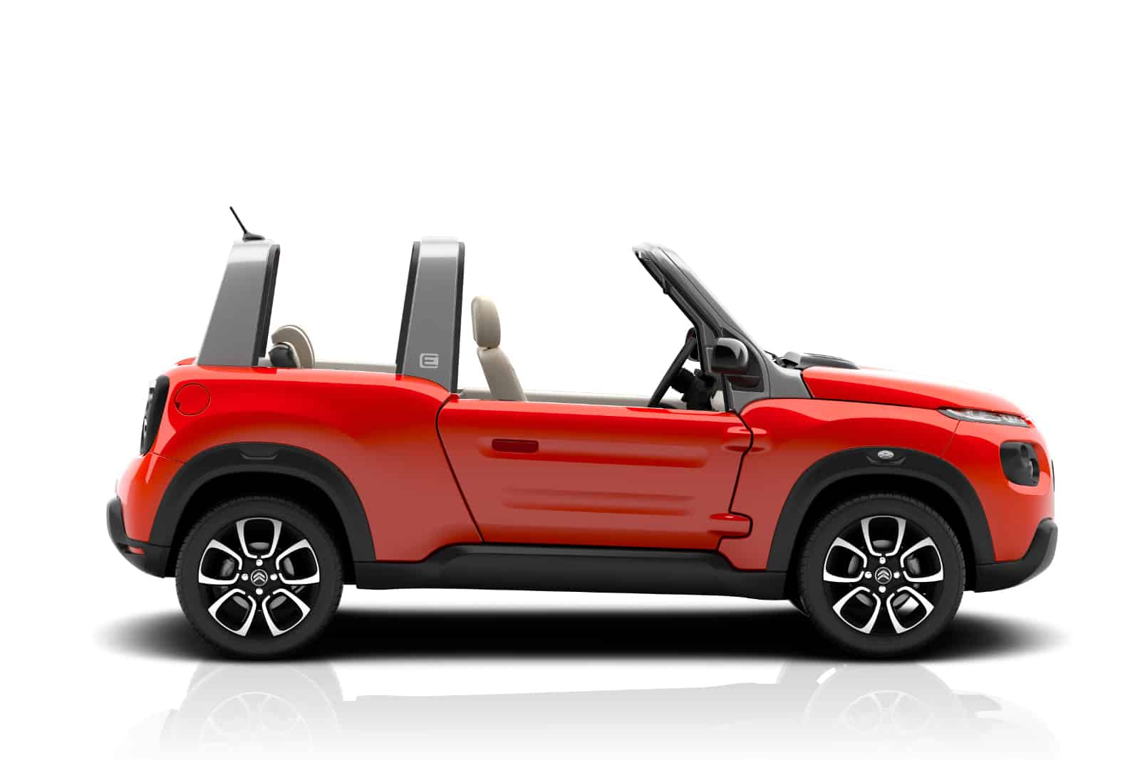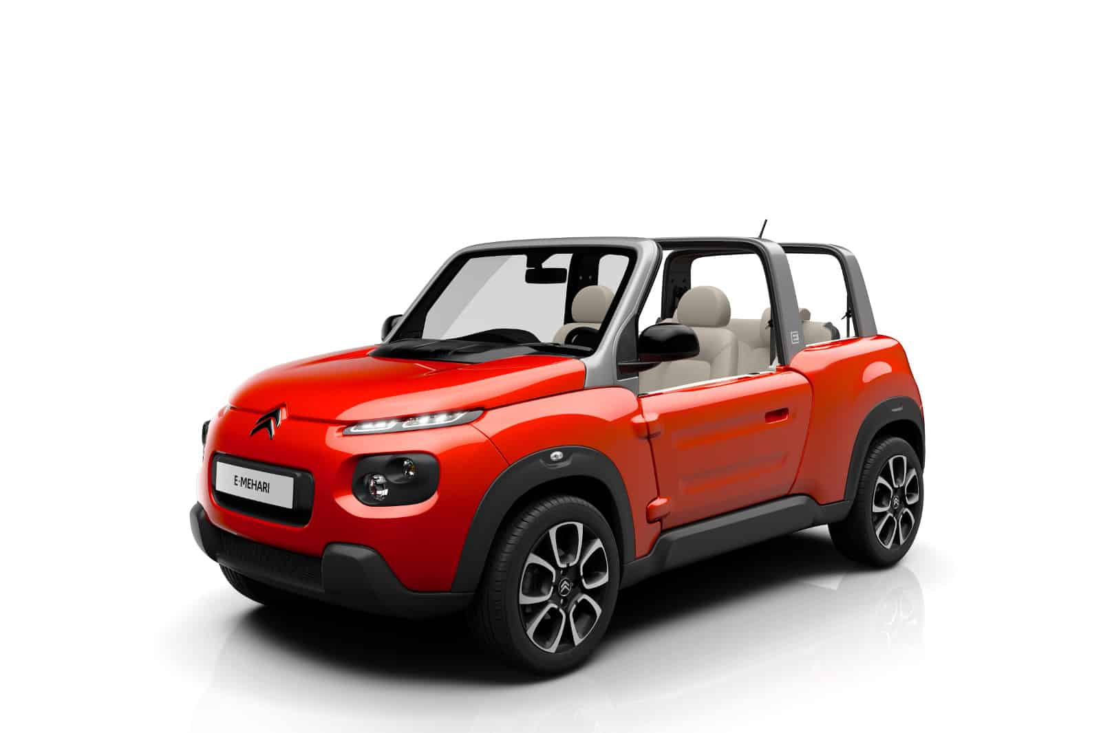 السيارات – كشفت سيتروين النقاب بصورة رسمية عن سيارتها الجديدة E-MEHARI التي تم استعراض ملامحها في صورة موديل كاكتوس M التجريبي . وقد طورت E-MEHARI بالتعاون بين سيتروين ومجموعة Bolloré ، كما ترتكز علي موديل Bolloré Bluesummer المكشوف . ورغم ذلك تعرف السيارة علي الفور بهوية سيتروين مع واجهة أمامية بوحي موديل كاكتوس وكسوة من البلاستيك لجسم السيارة وعجلات ألومنيوم مألوفة ، فيما تحمل السيارة المكشوفة رباعية المقاعد زجاج أمامي فضي وجسم مصنع من البلاستيك الحراري وسقف قابل للطي.