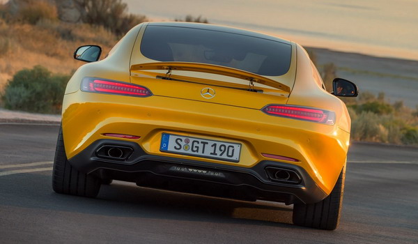 في الخلف، تنساب الخطوط من سقف السيارة على الزجاج الخلفي رائع التصميم، والقوائم الخلفية الانسيابية، حتى الوصول للجناح الخلفي المتحرك الذي يعزز من ارتكازية السيارة على السرعات الكبيرة، ومساحة التخزين الخلفية الجيدة التي تضمن تفوق السيارة كـ GT، وبالطبع المصابيح الخلفية التي تمتد على الجانبين المضاءة بالـ LED الجذابة، وفتحات طرد العادم كبيرة الحجم على الجانبين، ومشتت الهواء السفلي الذي يعمل كذلك على تعزيز ارتكازية AMG GT.