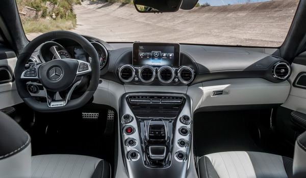 تقدم مرسيدس AMG GT مقصورة بمزيج بين الراحة والرفاهية والرياضية، حيث توفر لك السيارة القدرة على التنقل لمسافات طويلة بسرعة وأداء فائق، وهو ما يظهر من خلال فتحات التهوية الأربعة وسط المقصورة التي تبدو كفتحات محرك نفاث، وعجلة القيادة الرياضية مستقيمة القاعدة التي تحمل شعار AMG ومن خلفها بدالات نقل السرعات المعدنية، وحتى لوحة العدادات الرياضية التي تعطيك فكرة مؤكدة عن أداء السيارة.