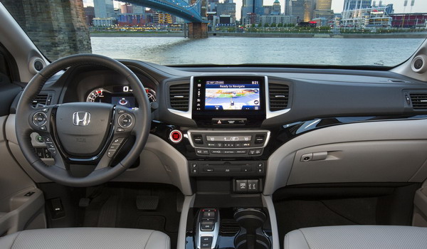 في الوسط تأتي أدوات التحكم في النظام الصوتي ومكيف الهواء المتطور، وشاشة النظام المعلوماتي المستجيبة للمس قياس 8 بوصات، والمنطقة المتسعة بين المقاعد الامامية والتي اختفت منها عصا نقل السرعات واستبدلتها هوندا بأزرار تقوم بنفس الوظيفة، إضافة إلى حاملي أكواب، وفتحات لتوصيل أجهزة الوسائط المتعددة بالنظام الصوتي لبايلوت.