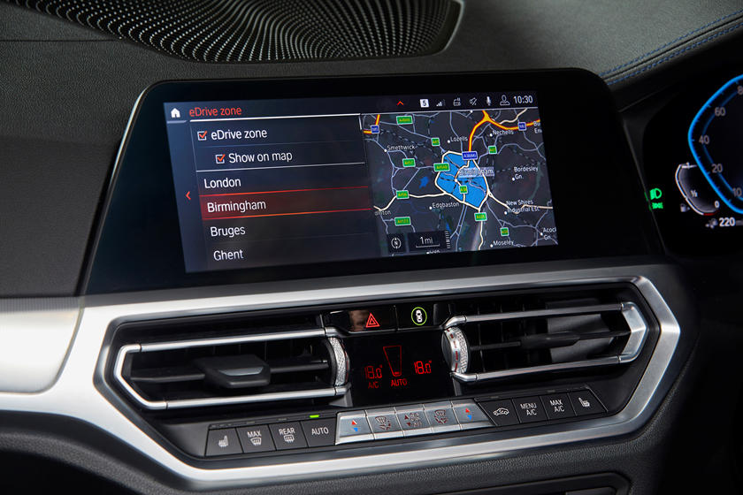 ومع نطاقات كهربائية تصل إلى 54 ميلاً ، سيمكن ذلك السائقين من إتمام التنقل داخل المدينة بدون انبعاثات تمامًا واستخدام محرك الاحتراق الداخلي في الرحلات الطويلة. وتستخدم خدمة مناطق eDrive من BMW تقنية تحديد المواقع الجغرافية GPS ضمن نظام الملاحة للتعرف على المناطق المنخفضة الانبعاثات في لندن. وفي برمنجهام ، يمكن استخدام الخدمة عند افتتاح منطقة الهواء النظيف المخطط لها في المدينة في عام 2021.