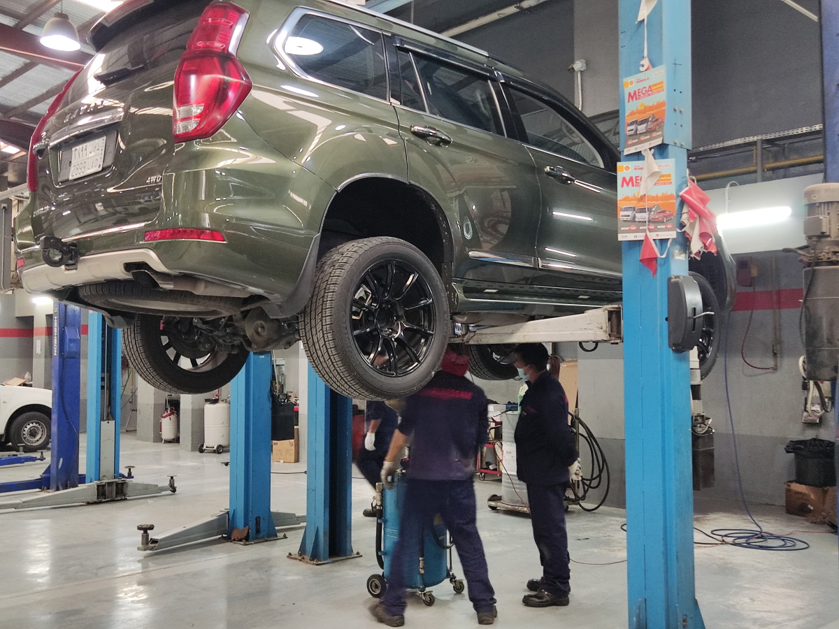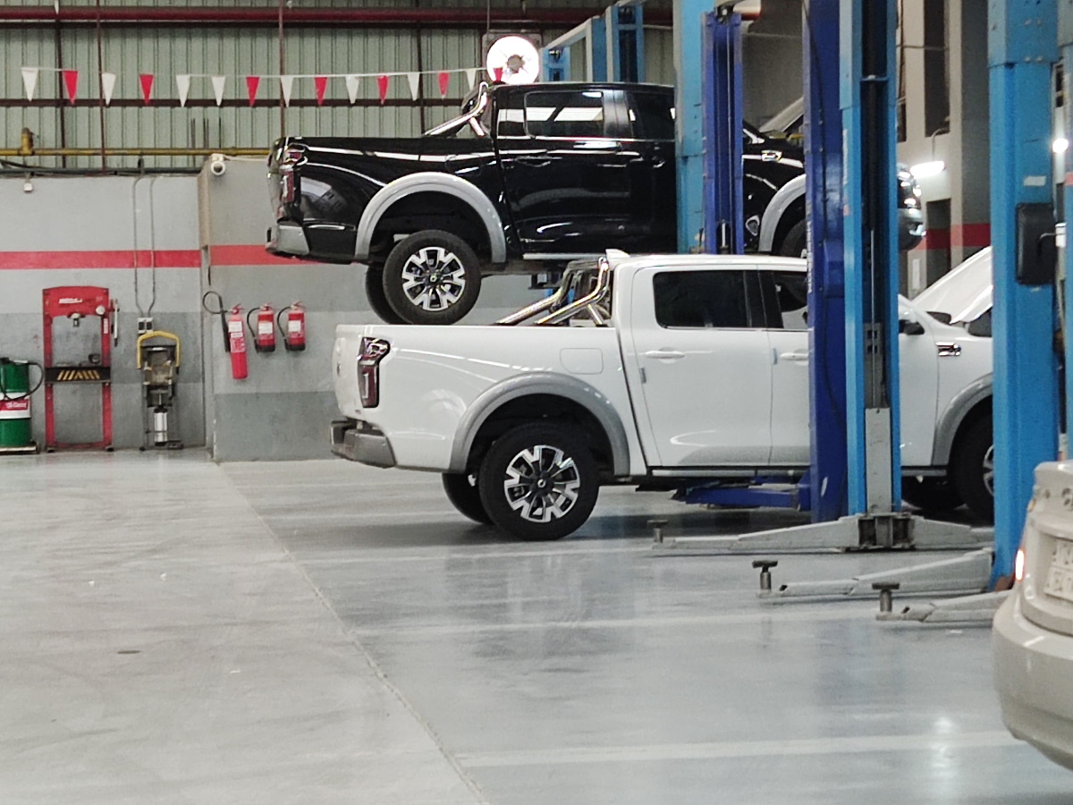 سيارات البك اب الجديدة باور من جريت وول على الرافعه لعمل الصيانة اللازمة لها