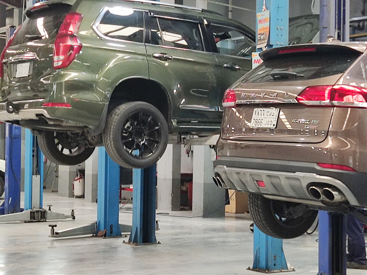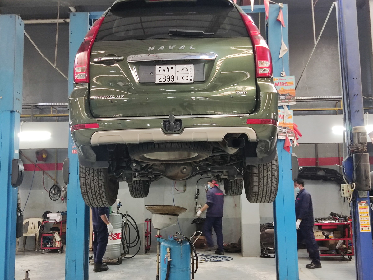 هافال H9 اخر على احدى الرافعات تتم صيانته