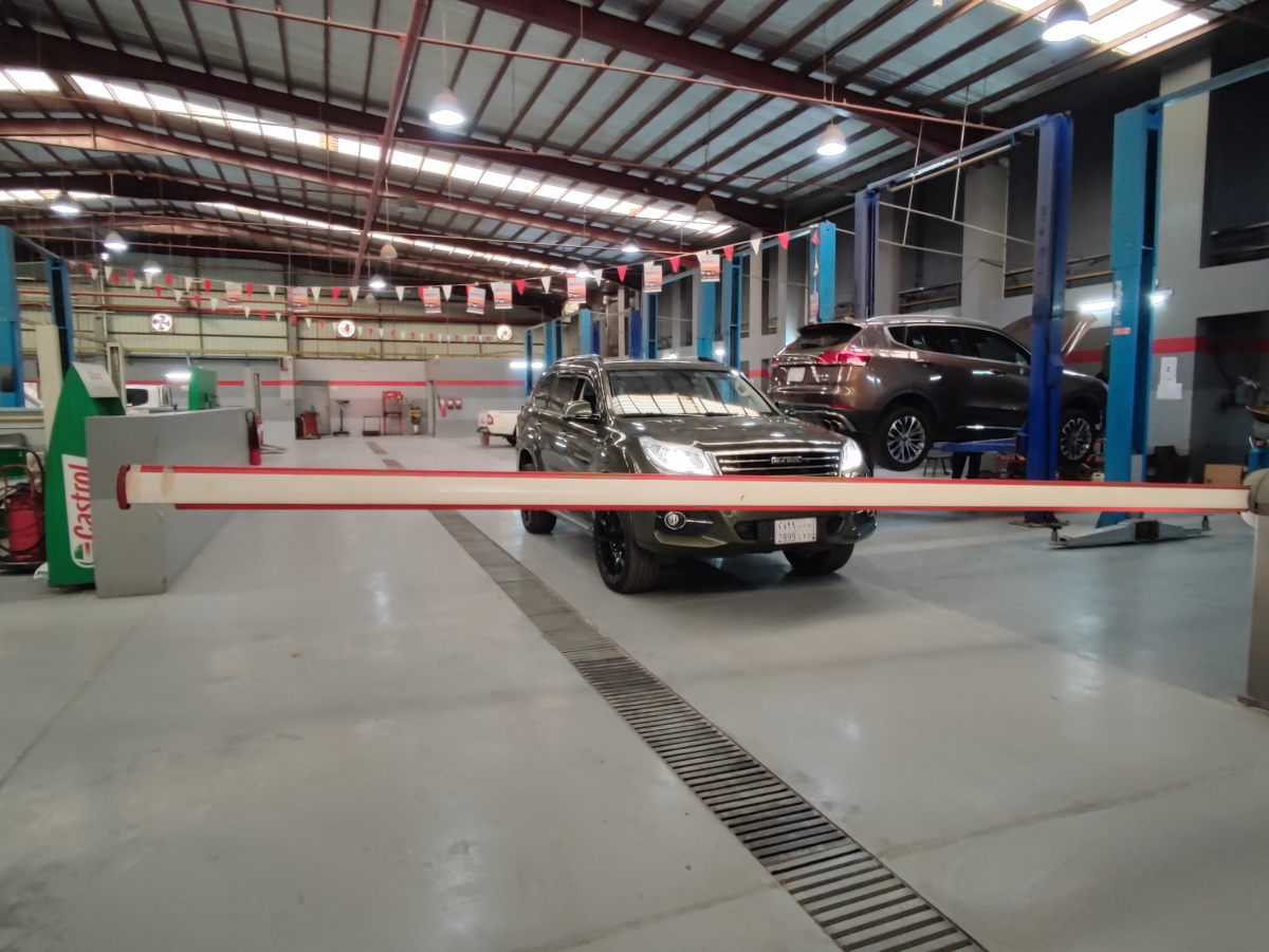 لحضة دخول السيارة على الرافعة لرفعها لعمل الفحص وتغيير الزيوت والسوائل والقطع المراد تغييرها