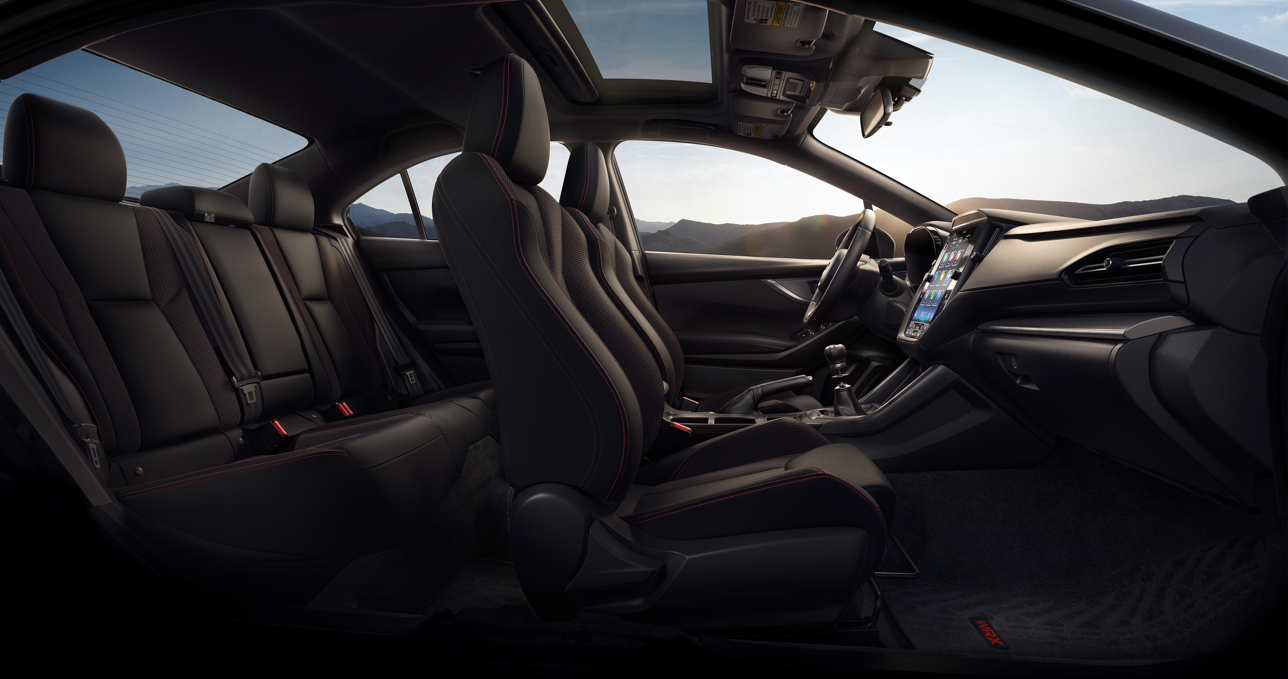 تشمل ميزات WRX اتصالاً لاسلكياً بالهاتف، وكاميرا للرؤية الخلفية، ونظام تحكم مناخي ثنائي المناطق، وعجلة قيادة مغلفة بالجلد، ومقاعد قماشية، ونوافذ أمامية تعمل بالكهرباء، وعمود توجيه قابل للإمالة والتعديل، ومصابيح أمامية LED.