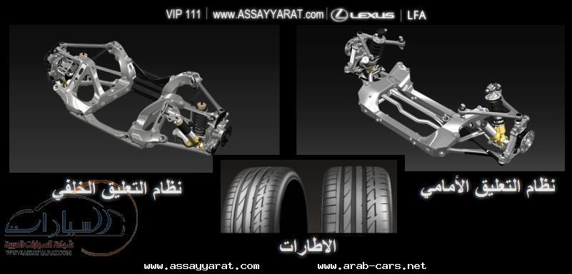 وفرت لكزس للسيارة نظام تعليق متطور وفريد مصنوع من سبائك الالمونيوم بالاضافة الى وصلات بلاستيكية معززه بالياف الكربون