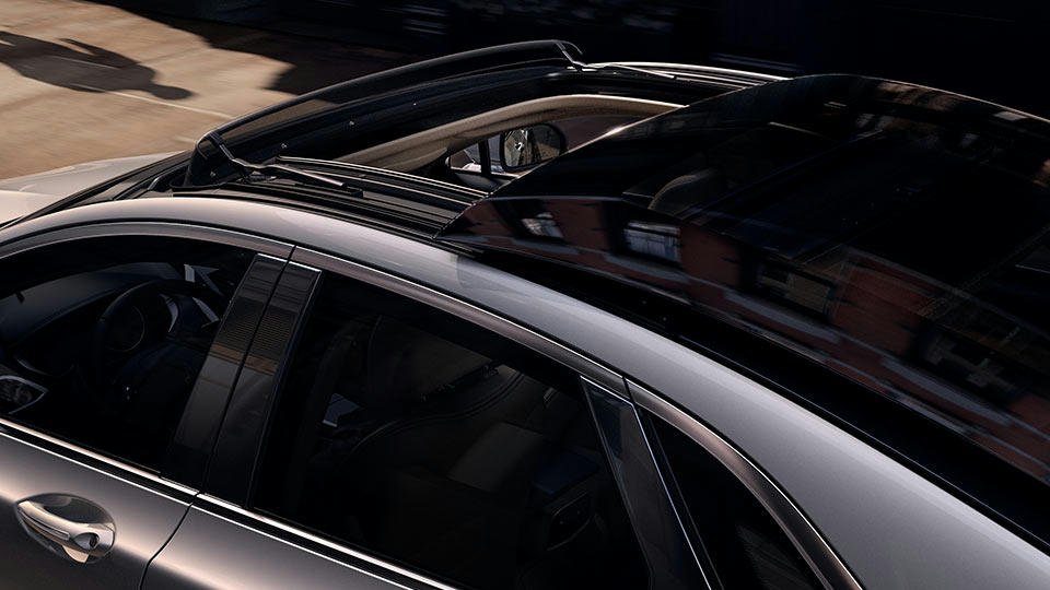والسقف البانورامي القابل للسحب بالكامل والذي يعتبر من أكبر فتحات السقف في سيارات السيدان العصرية.