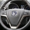 المقود يتوسطه شعار الشركة و مزود بالعديد من أزرار التحكم الخاصة بالنظام الترفيهي والبلوتوث وكذلك مثبت السرعة .