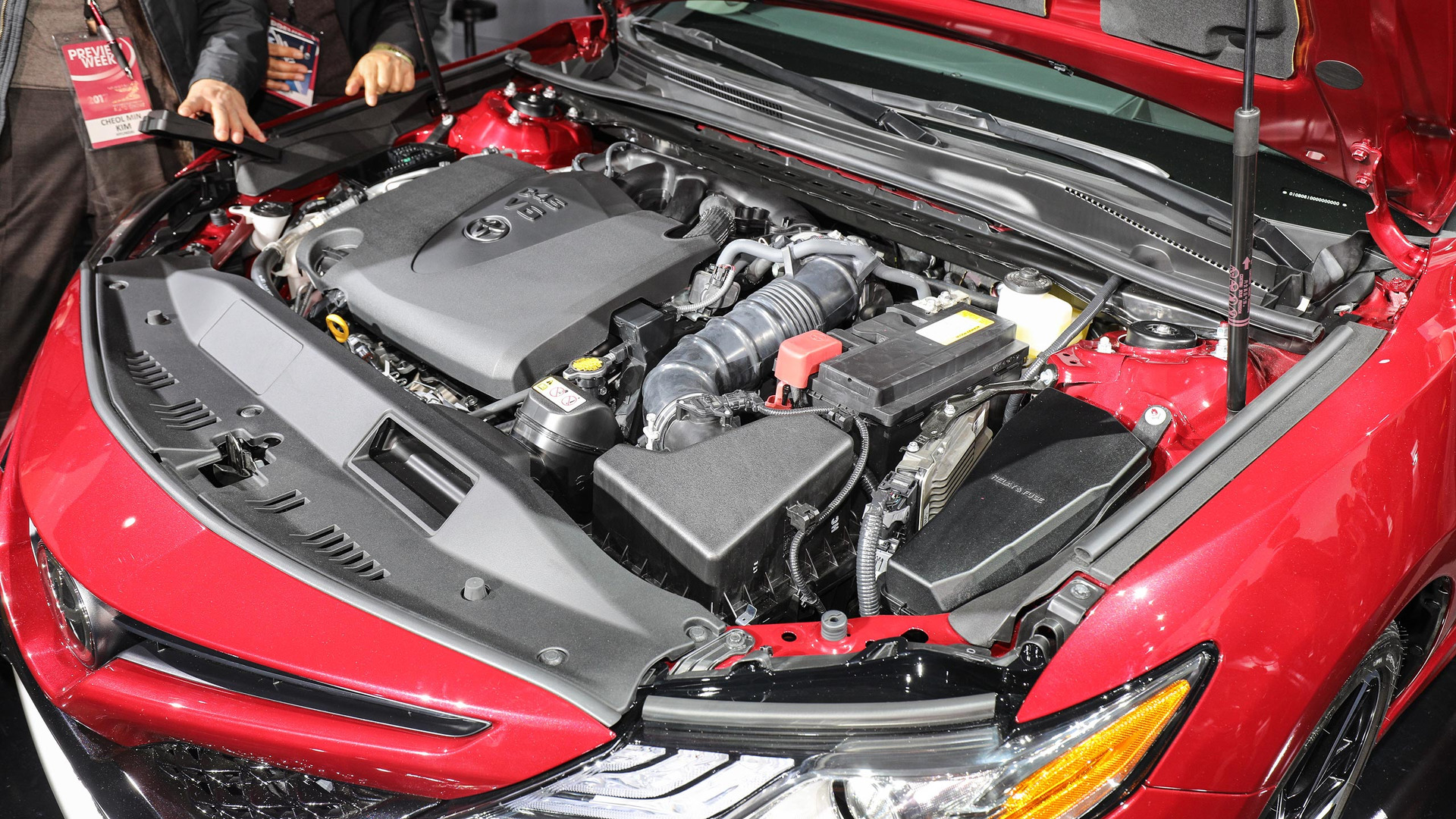 نقيضا للإشاعات السابقة التي تحدثت عن استبدال محرك الـ6 اسطوانات بمحرك 4 اسطوانات توربو ،، الكامري الجديدة تأتي بخيار 6 اسطوانات بتقنية D-4S بنظامي حقن وقود مباشر و غير مباشر بآن واحد ، بسعة 3.5 لتر هذا المحرك يولد 295 حصان ، و 263 باوند. قدم من عزم الدوران .