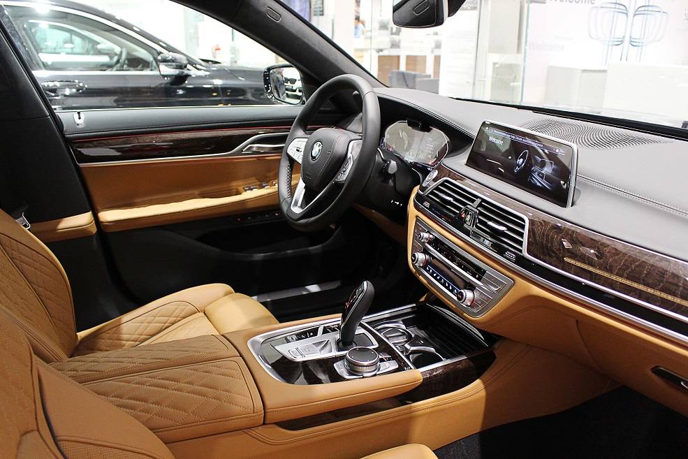 ويتضمن التصميم الداخلي للفئة السابعة من BMW أحدث نظام مساعدة للسائق "BMW ConnectedDrive" وأنظمة ترفيه تتضمن نظام الأوامر باللمس الذي يتيح للركاب في المقاعد الخلفية إمكانية التحكم بعدد من الوظائف في السيارة باستخدام جهاز كمبيوتر لوحي قياس 7 إنش من سامسونغ.