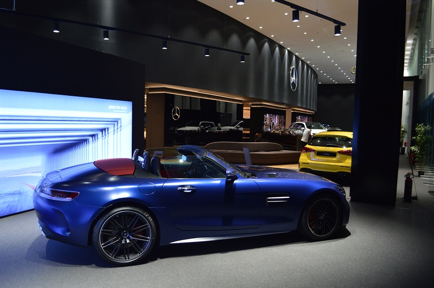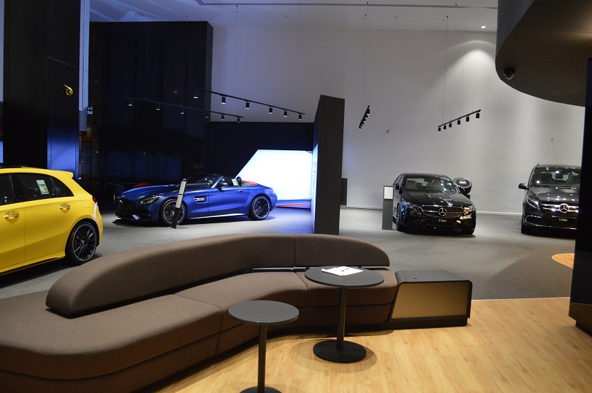 كما تحتوي الصالة على العديد من الكماليات المعروضة والمخصصة من مرسيدس بنز مثل الملابس وبعض الاكسسوارات