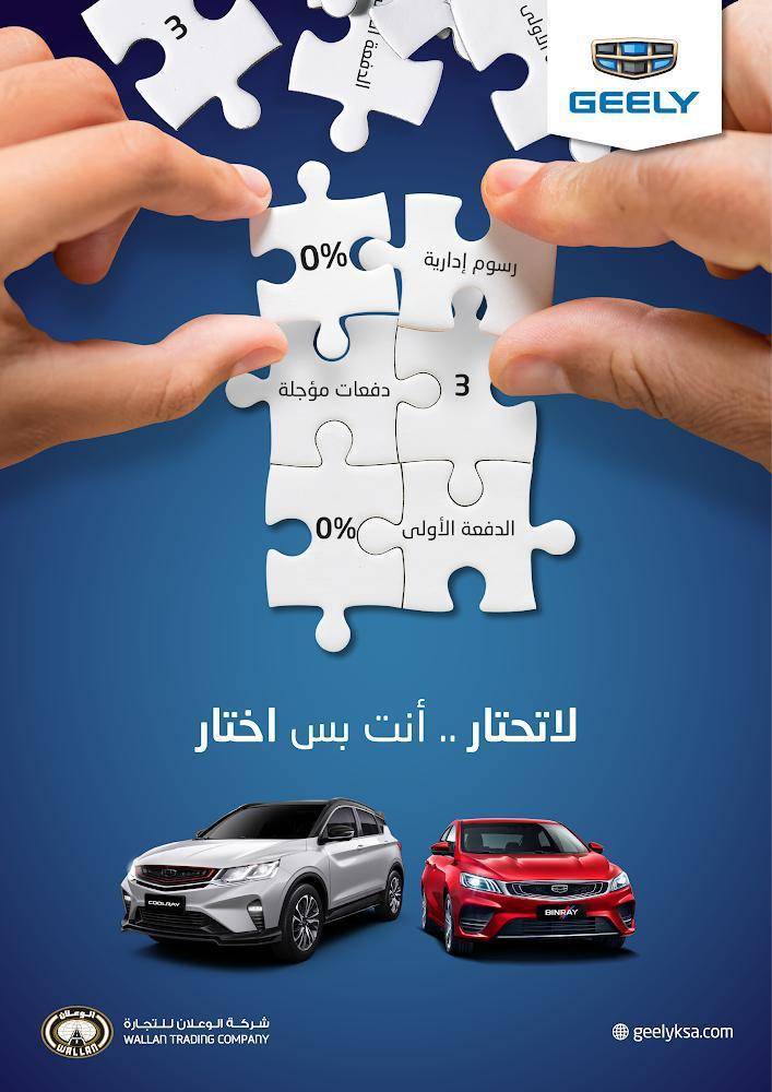 أطلقت شركة الوعلان للتجارة – وكلاء سيارات جيلي " Geely " بالمملكة أولى حملاتها الترويجية بعد عودة النشاط الاقتصادي للدوران حملت شعار " على مودك " التي تستهدف العملاء الراغبين بتملك سيارات جيلي الجديدة من خلال عروض ترويجية مميزة يختار العميل الطريقة المناسبة لــه وهـي واحدة من أكبر واهم باقات العروض الترويجية في معارضها بعد حصولها على وكالة العلامة الصينية الاكبر في العالم " Geely " على كافة الطرازات المتوفرة في معارضها بكل من الرياض ، جدة ، والمنطقة الشرقية ، دعما منها لعملاءها بعد عودة النشاط التجاري والاقتصادي واستكمالا لدورة الحياة التي انطلقت بتفاؤل وأمل توازيا مع حملة " نعود بحذر" التي اطلقتها الجهات المختصة تمهيدا لعودة الحياة الطبيعية بالمملكة .