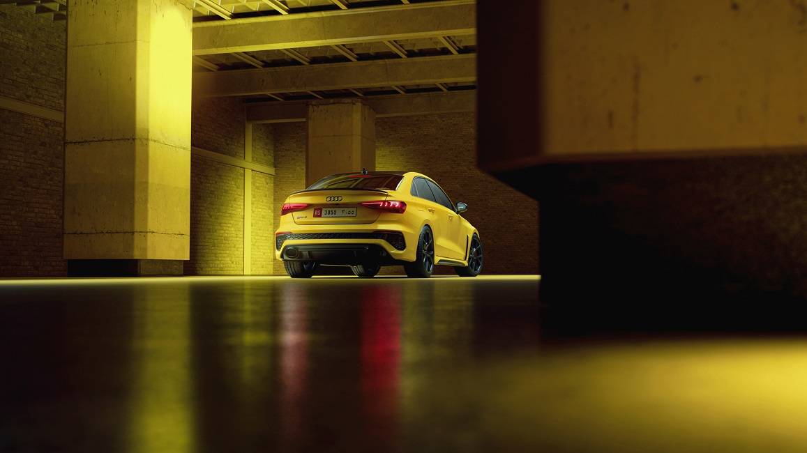 يوفر المظهر الخارجي لـسيارة RS ذات اللون الأسود غير اللامع تناغماً جذابًا مع تشطيبات الطلاء. لإضافة المزيد من اللمسات التعبيرية الخاصة، يمكنك الاختيار من بين خيارين جذابين آخرين: مكونات RS الخارجية باللون الأسود اللامع أو بالألومنيوم. تظهر Audi RS3 Sedanطابعها التقدمي من كل جانب. تتميز الواجهة الأمامية بحضورها القوي من خلال إطار Audi Singleframe المسطّح والواسع وشبكة RS على شكل خلية النحل، وتحيط بالمقدمة مداخل هواء جانبية كبيرة. من خلال جاذبيتها الخاصة للغاية، إن RS3 مجهزة بمصابيح أمامية Matrix LED مع خاصية العمل أثناء النهار ووظيفة العودة إلى المنزل ومغادرة المنزل الخاصة بـفئات RS التي تعرض الرسوم الخاصة بالفئة. بفضل أبعادها الأكثر حدة وعناصر التصميم الخاصة بـ RS وتفاصيلها التعبيرية، فإن Audi RS3 Sedan مطلية باللون الأخضر الكيالامي الخاص بـ RS.