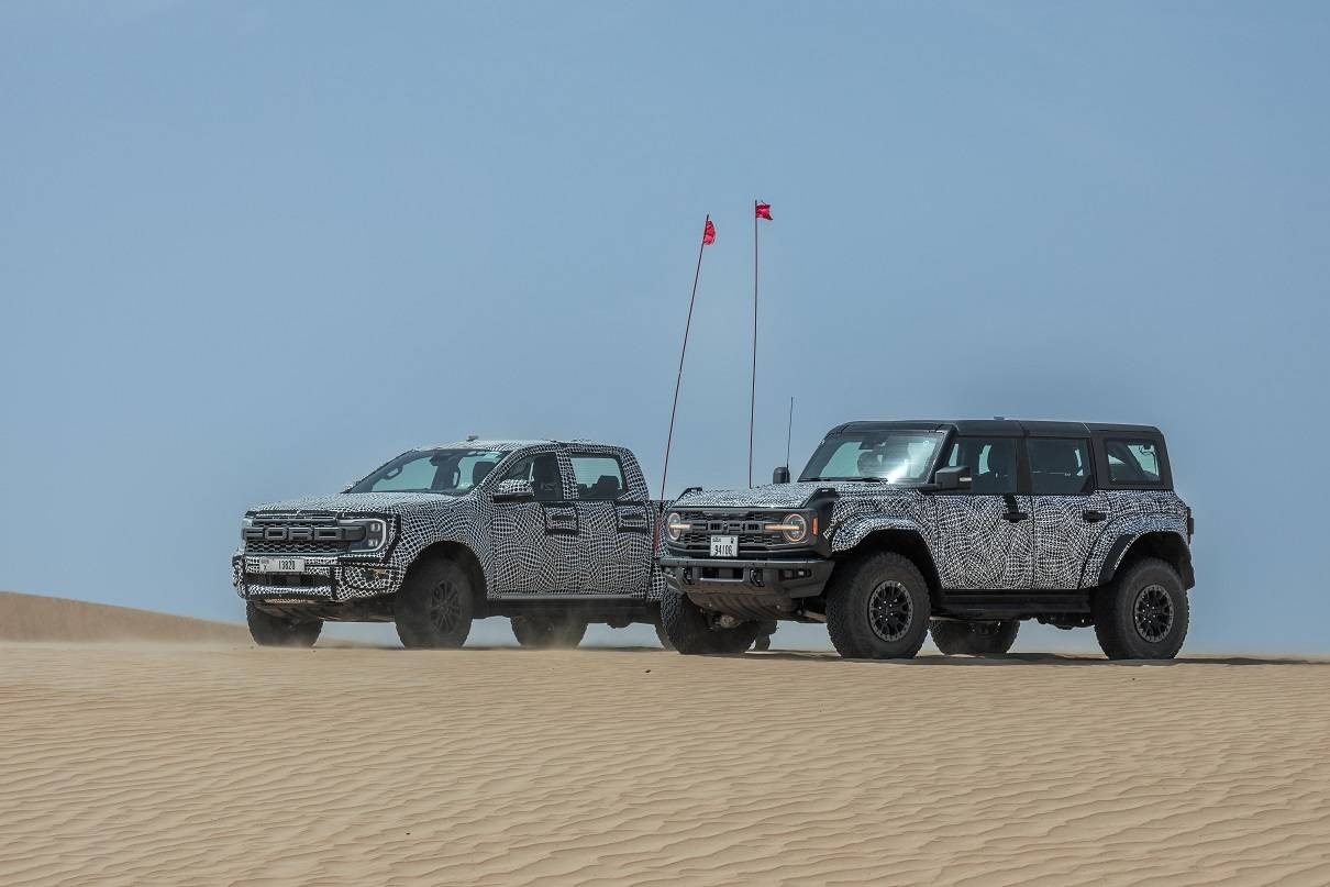 خضع طراز فورد برونكو رابتر الجديد كلياً والجيل المقبل من رينجر رابتر لظروف اختبار قاسية في الشرق الأوسط قبل إطلاقهما الوشيك. وعلى الرغم من درجات الحرارة المرتفعة لفصل الصيف في المنطقة، يستطيع هذين الطرازين القويين البقاء على الطرق الوعرة ومنح الركاب تجربة مريحة وأداء مناسب لكافة الظروف وذلك بفضل الفحص الدقيق الذي خضعت له كلتا السيارتين قبل الوصول إلى المنطقة.